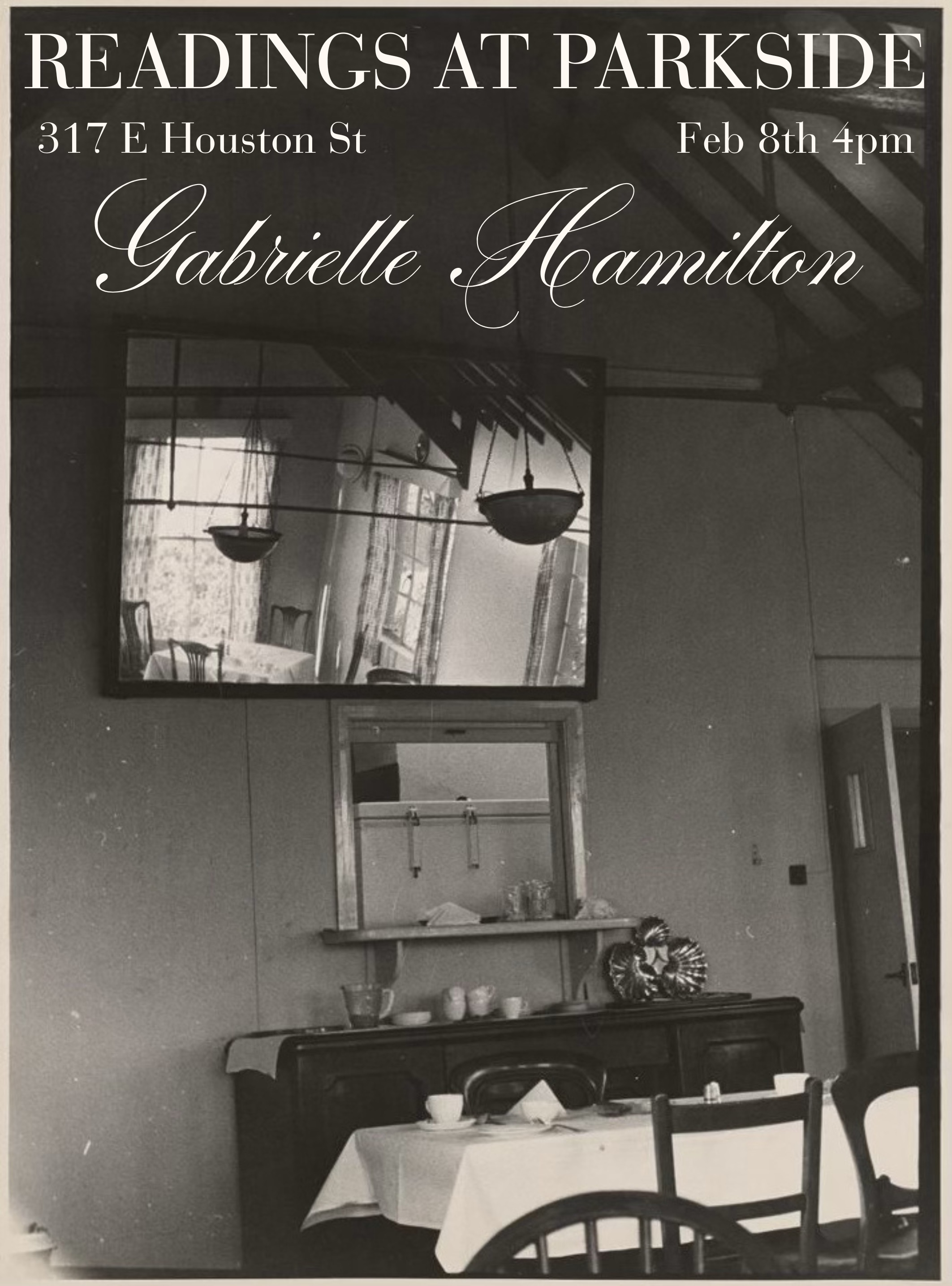 Readings at Parkside is honored to kick off our fourth year by welcoming Gabrielle Hamilton to The Parkside Lounge.